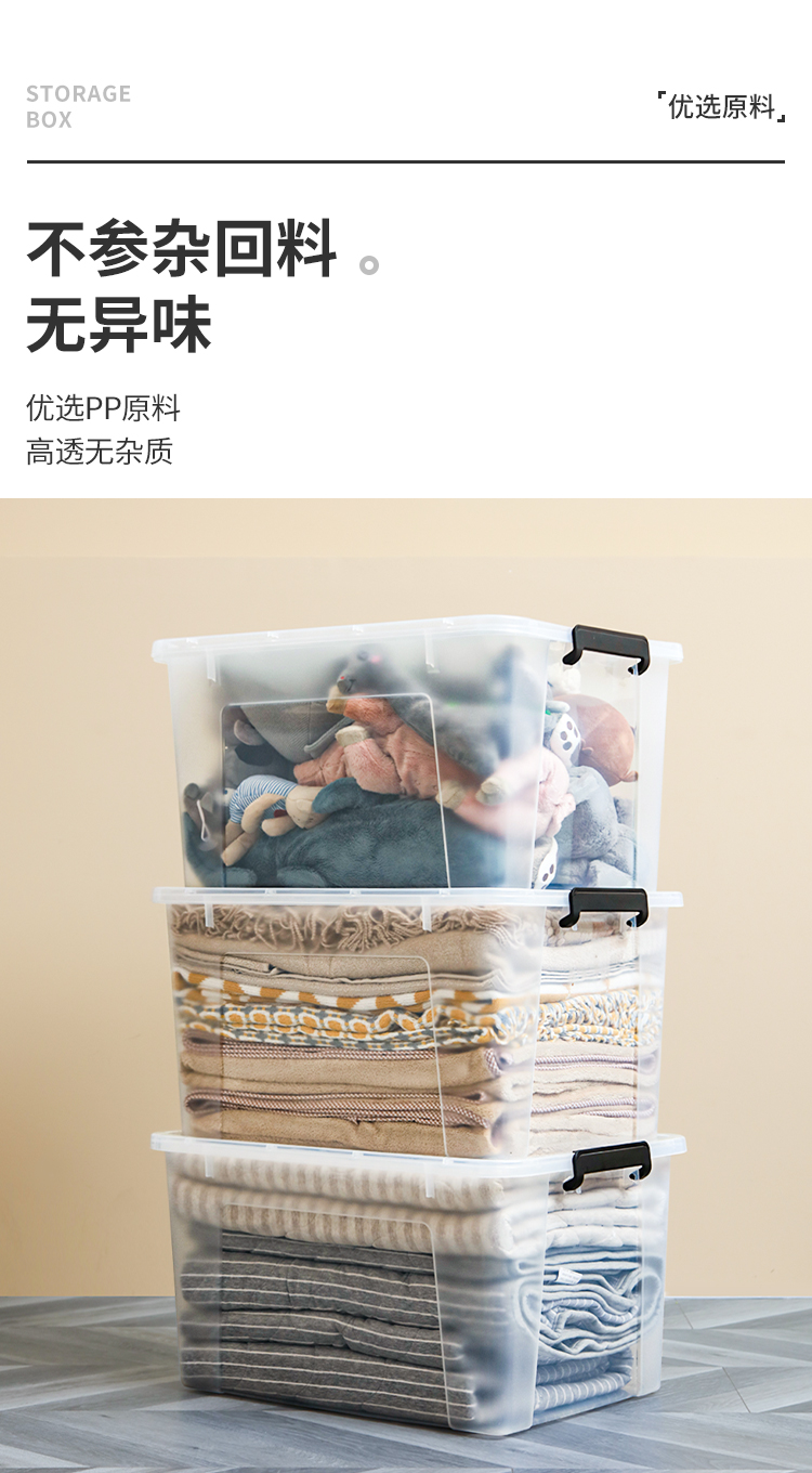 禧天龙 衣物被子收纳箱 透明 65升 1个装