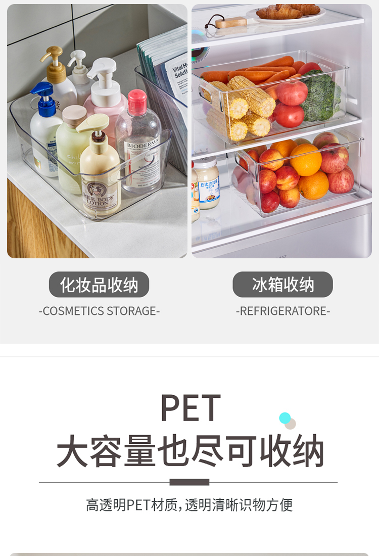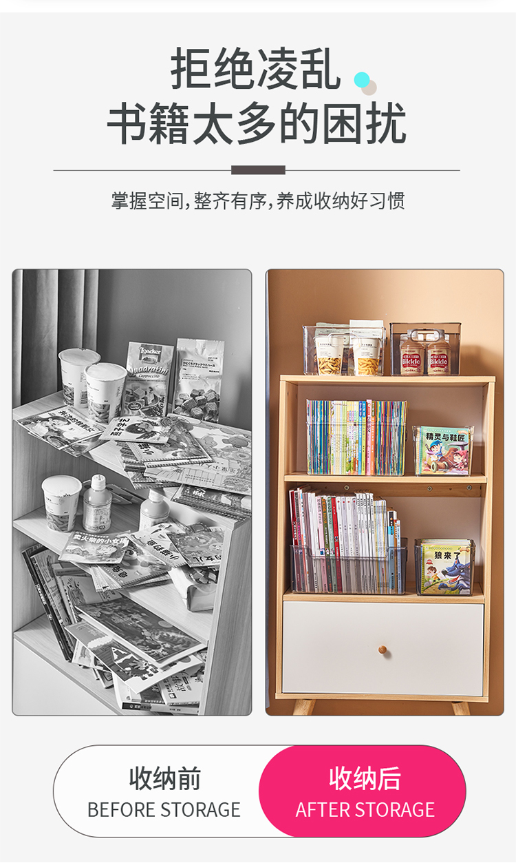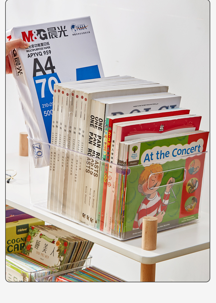 千屿桌面特大号书本收纳盒透明储物整理箱化妆品零食收纳盒玩具杂物收纳筐儿童书架