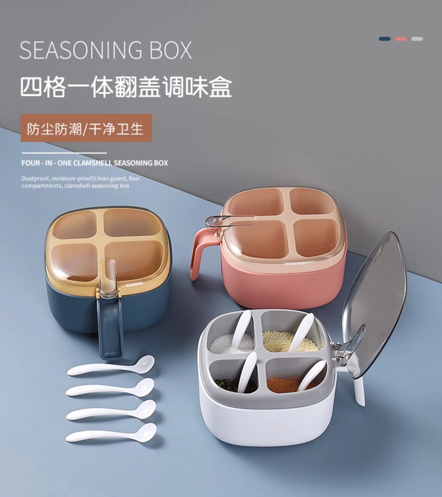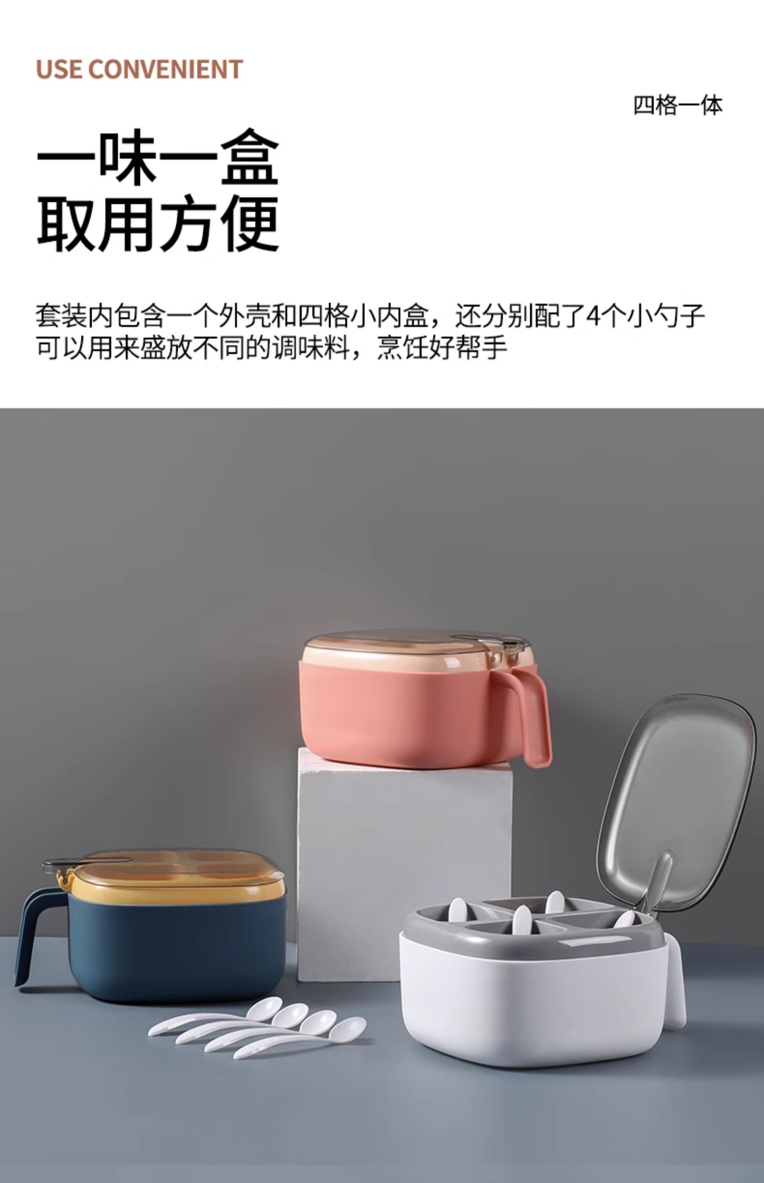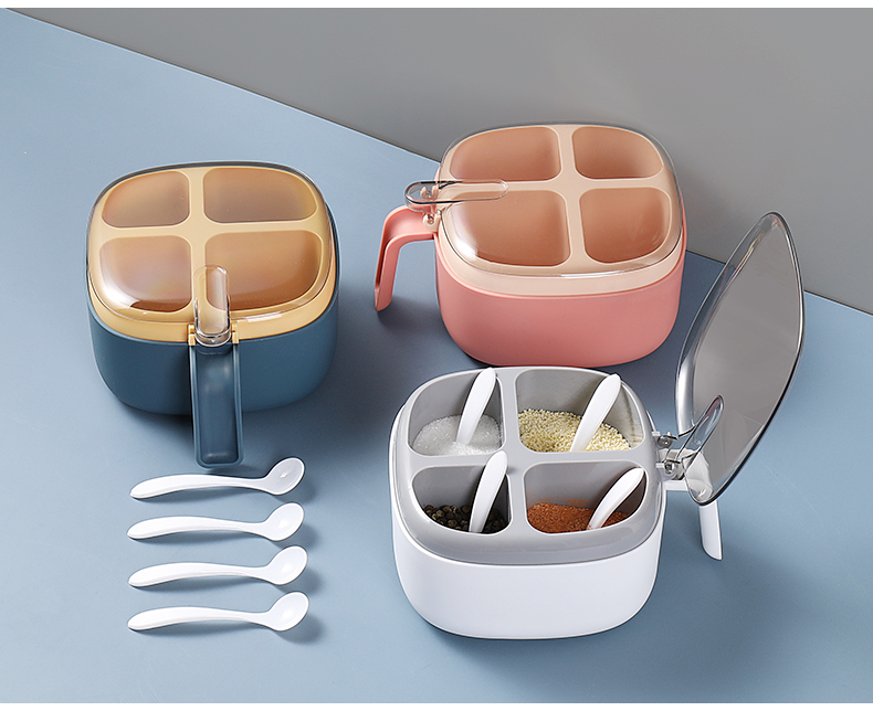 调料盒套装组合盐罐四格收纳一体糖味精家用厨房调味料盒罐油壶瓶