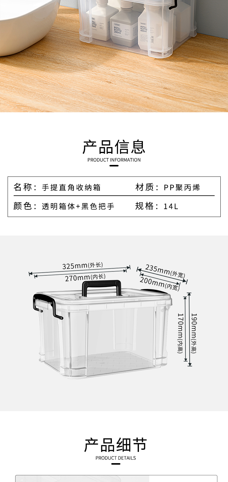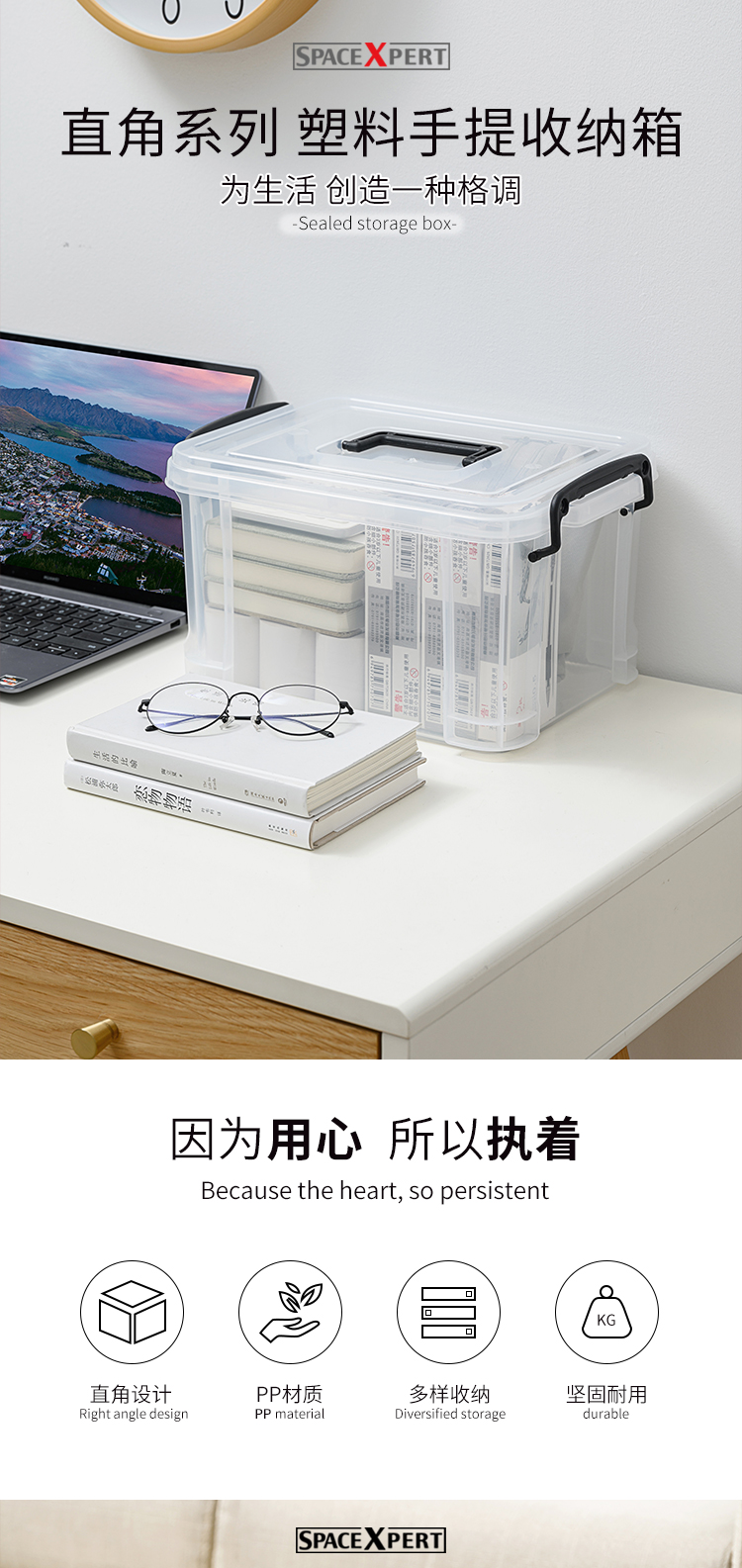 SPACEXPERT 直角抗压高透塑料收纳箱 14L