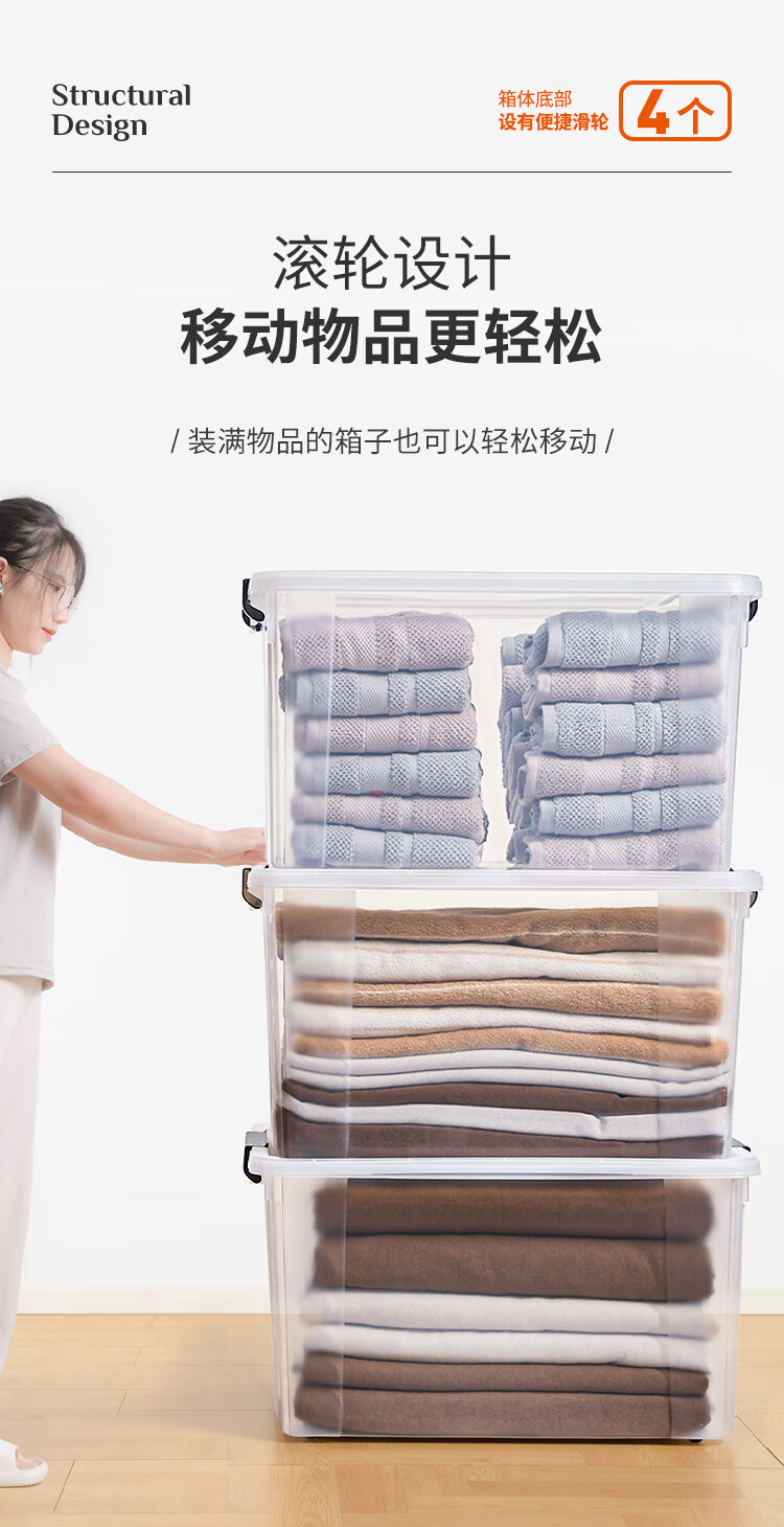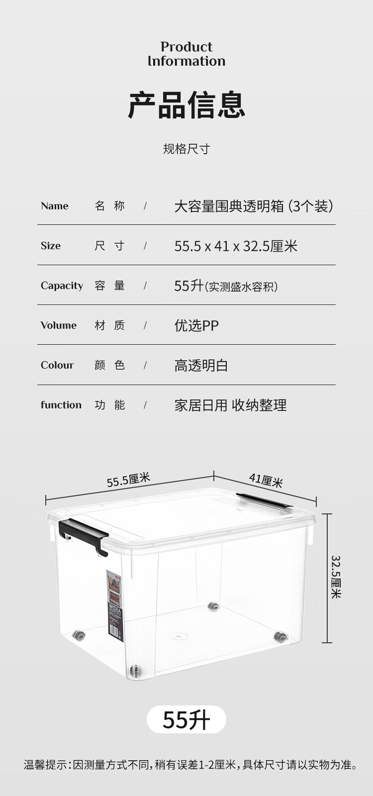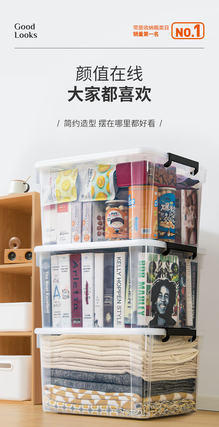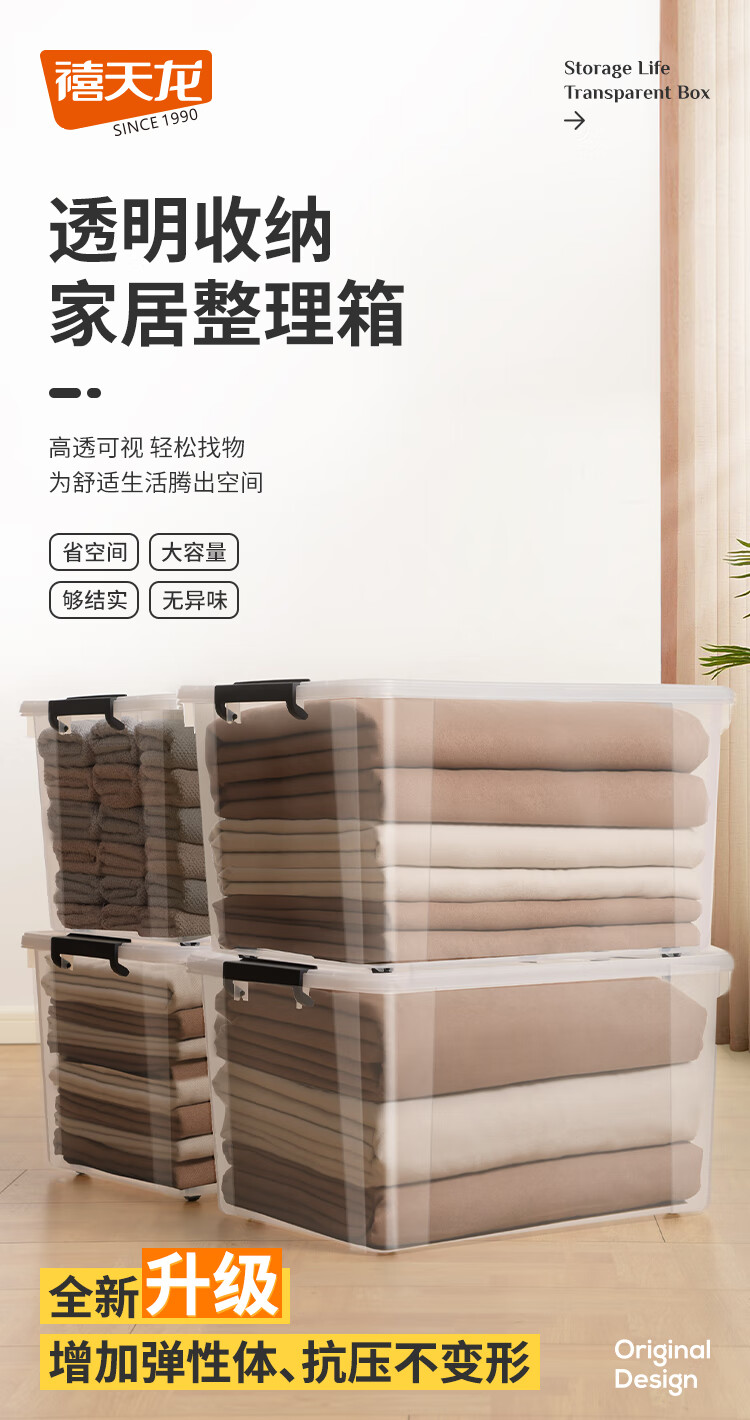 禧天龙 加厚衣服收纳箱大号55升3个装 儿童玩具整理箱 搬家箱