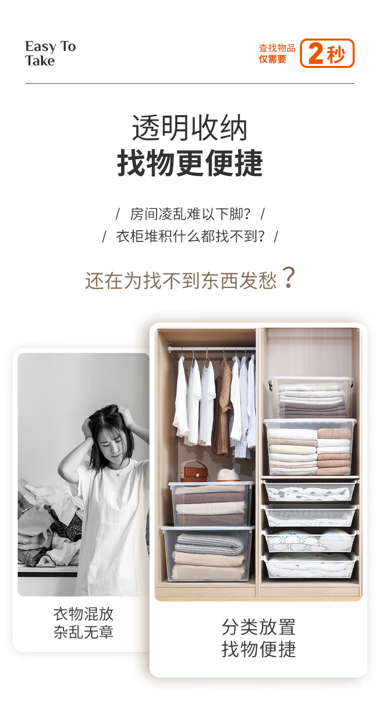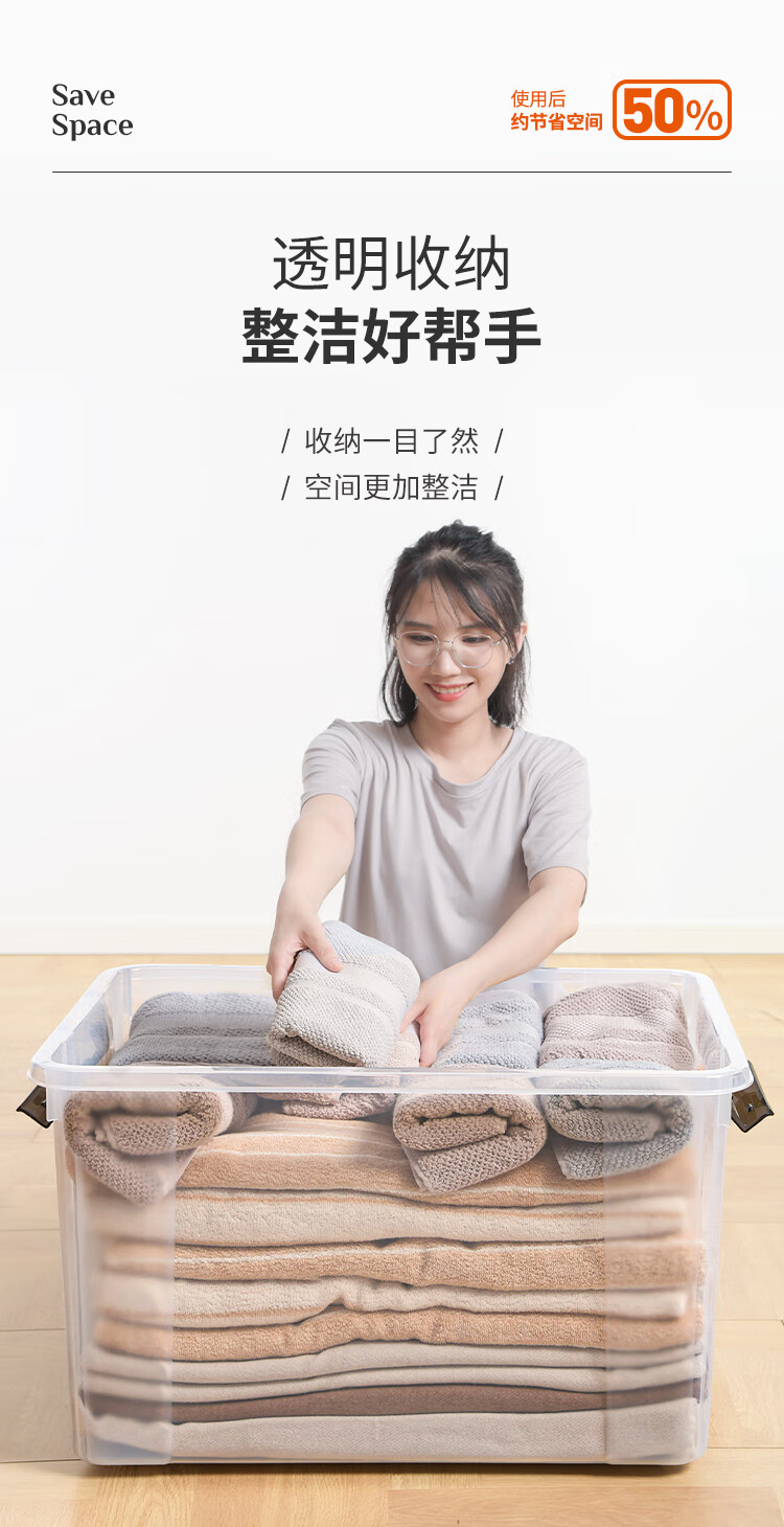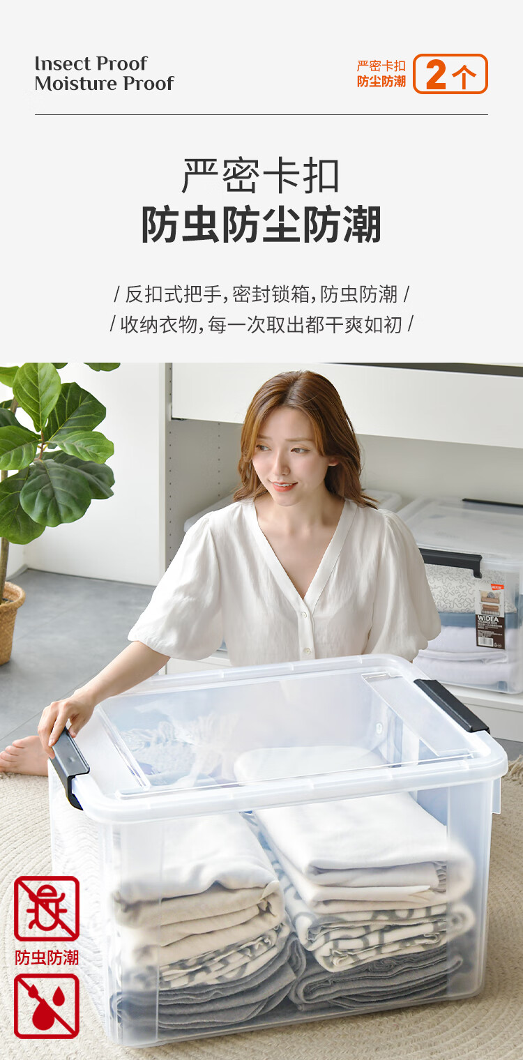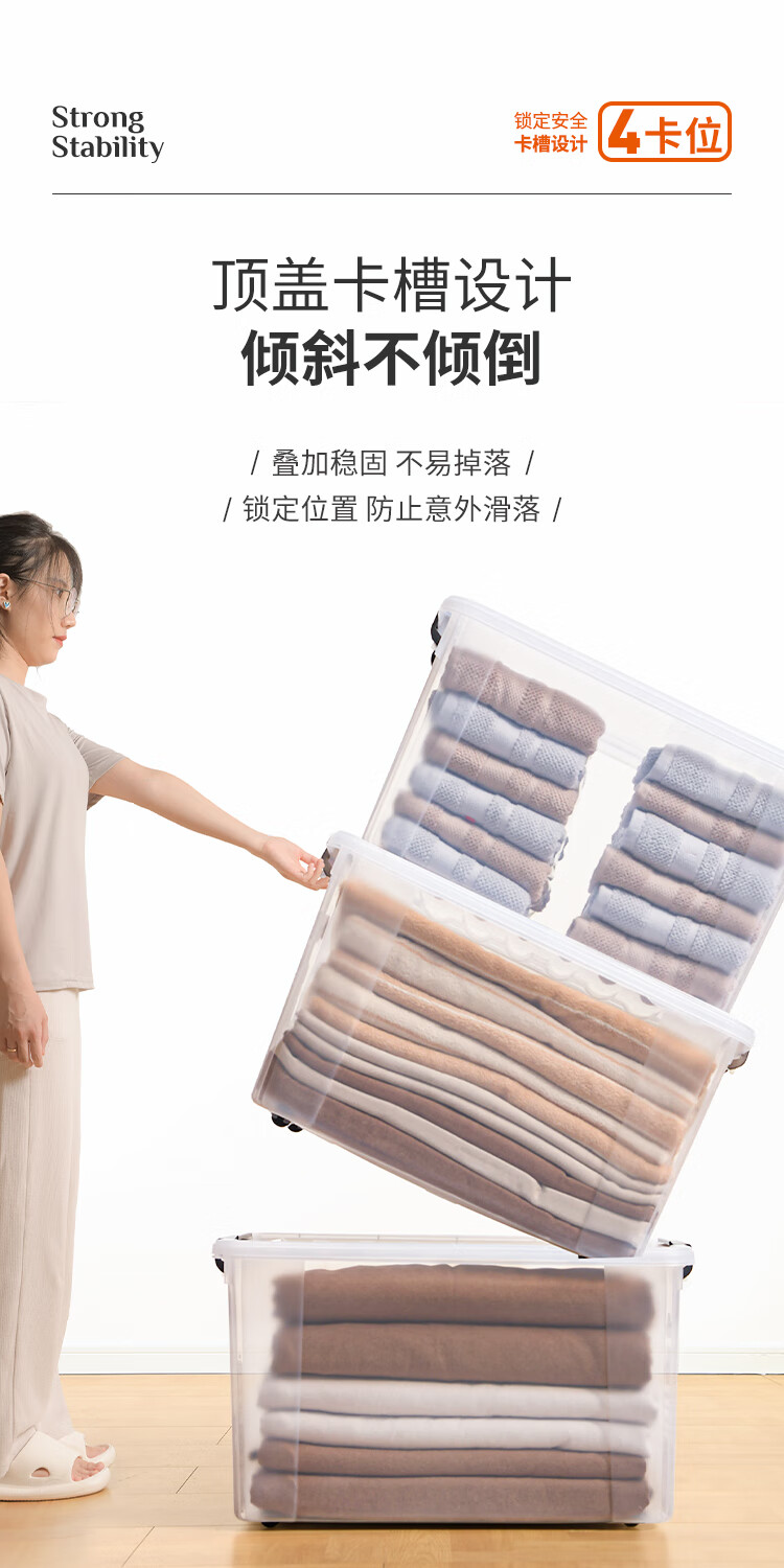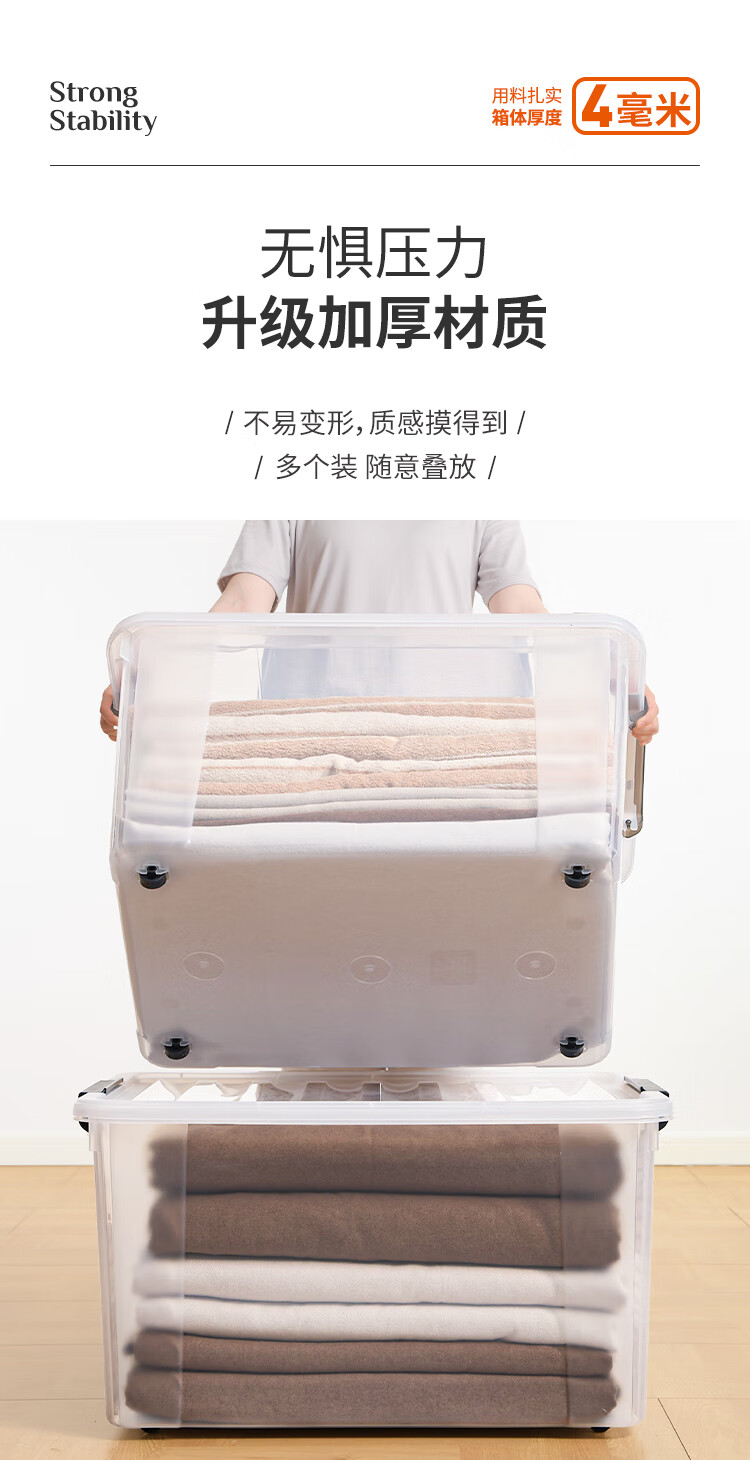 禧天龙 加厚衣服收纳箱大号55升3个装 儿童玩具整理箱 搬家箱