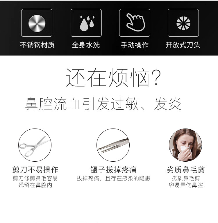 鼻毛修剪器男士手动不锈钢修鼻毛器剪鼻毛小剪刀圆头女鼻孔清洁器