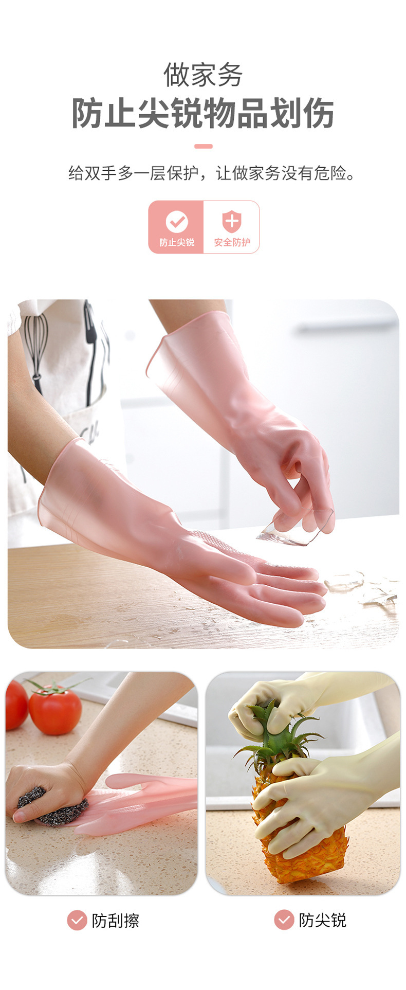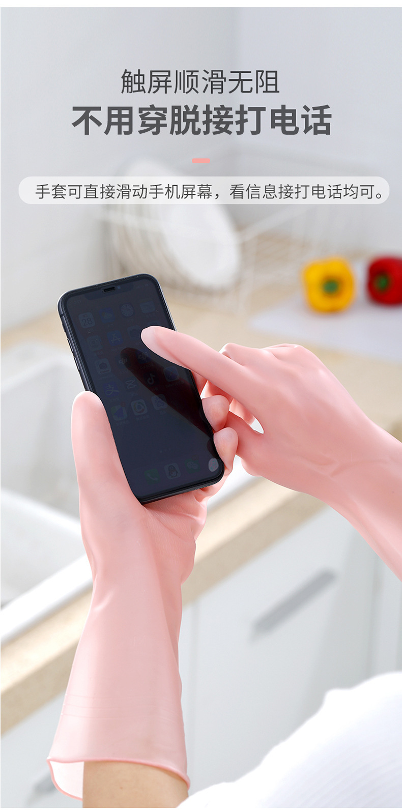 家务清洁手套果冻色常规款防滑手套家用厨房清洁家务清理防水手套