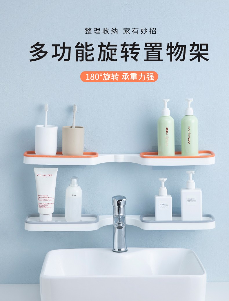 卫生间浴室壁挂式免打孔可旋转洗漱台沥水置物架厕所墙角转角收纳架壁挂可旋转洗漱台沥水置物架转角浴室收纳