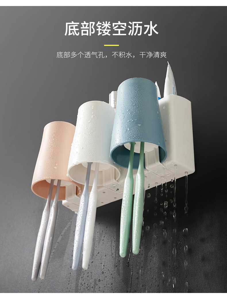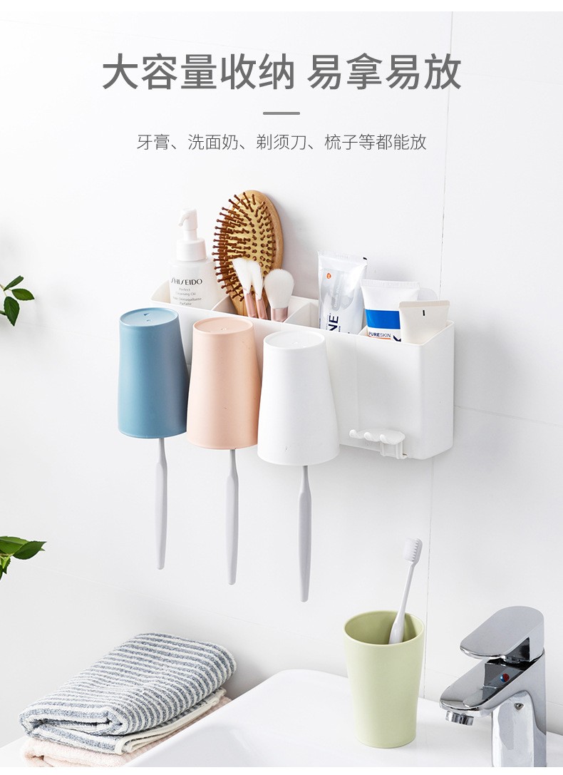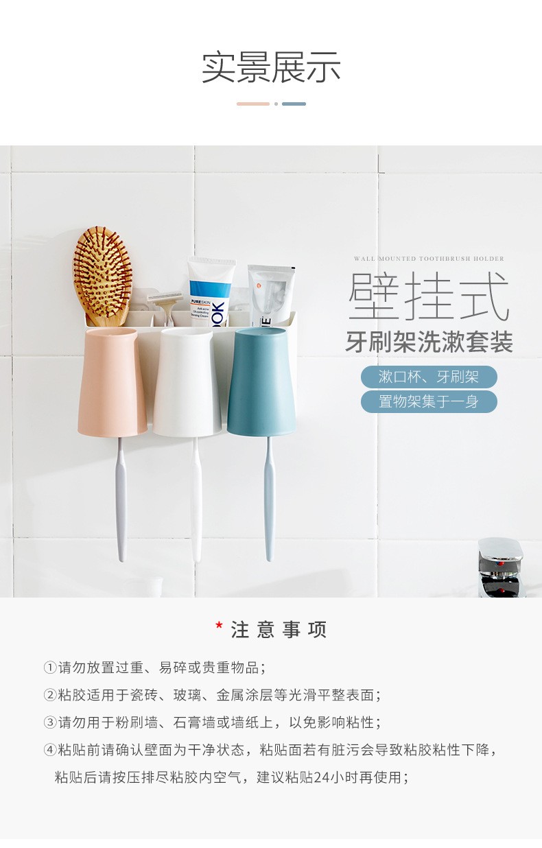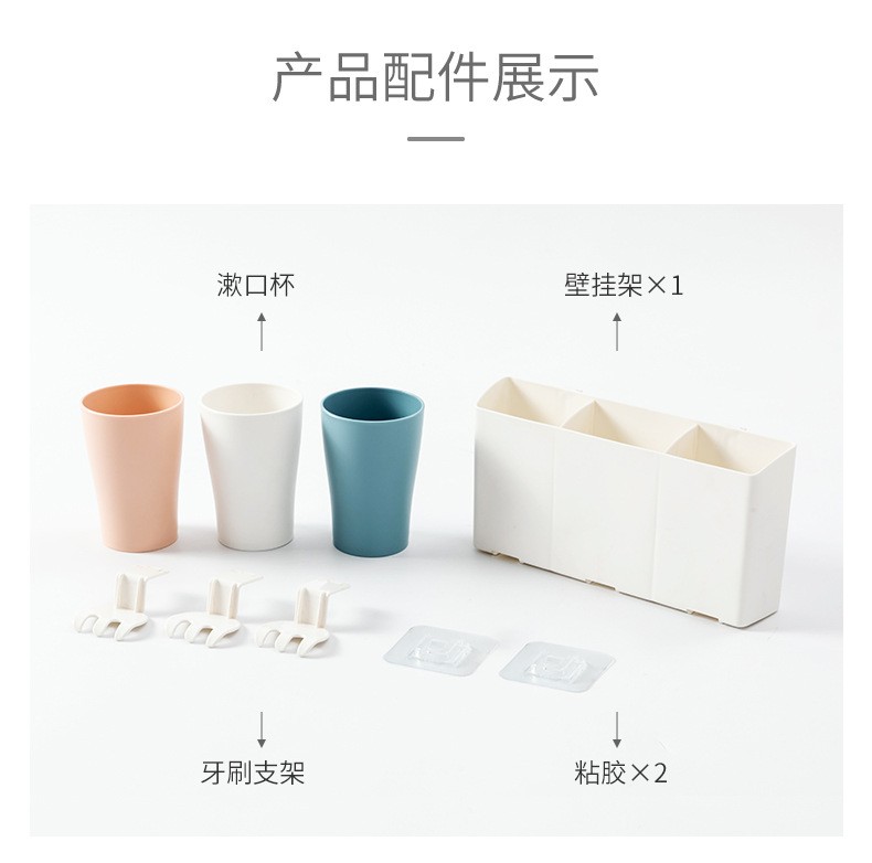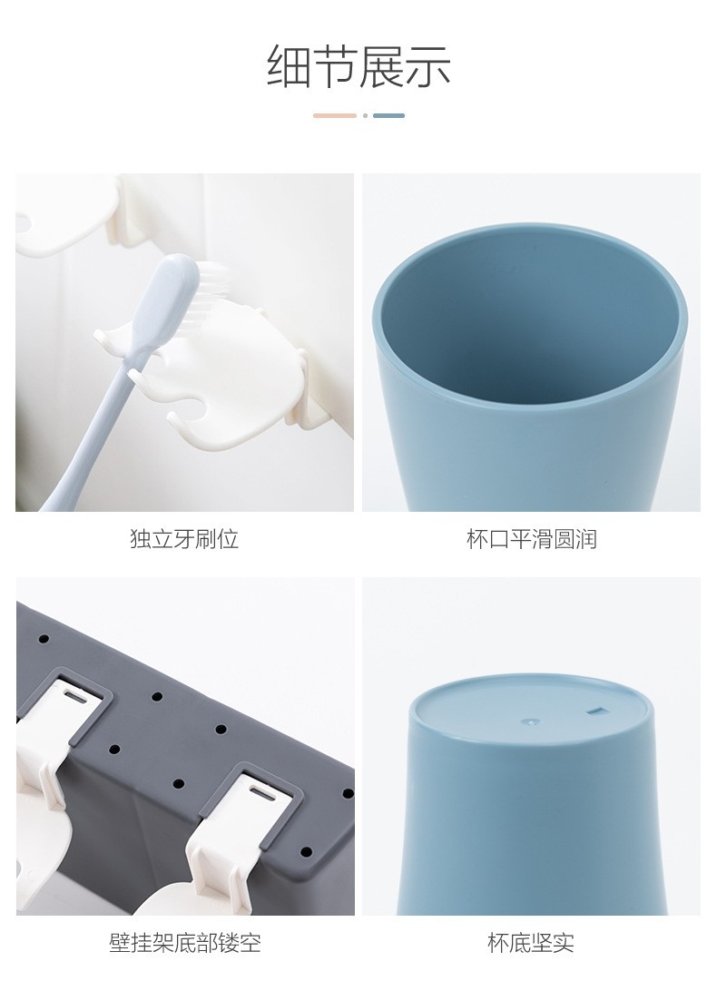 卫生间牙刷置物架牙刷架家用壁挂沥水漱口杯架浴室收纳置物架 白色双杯