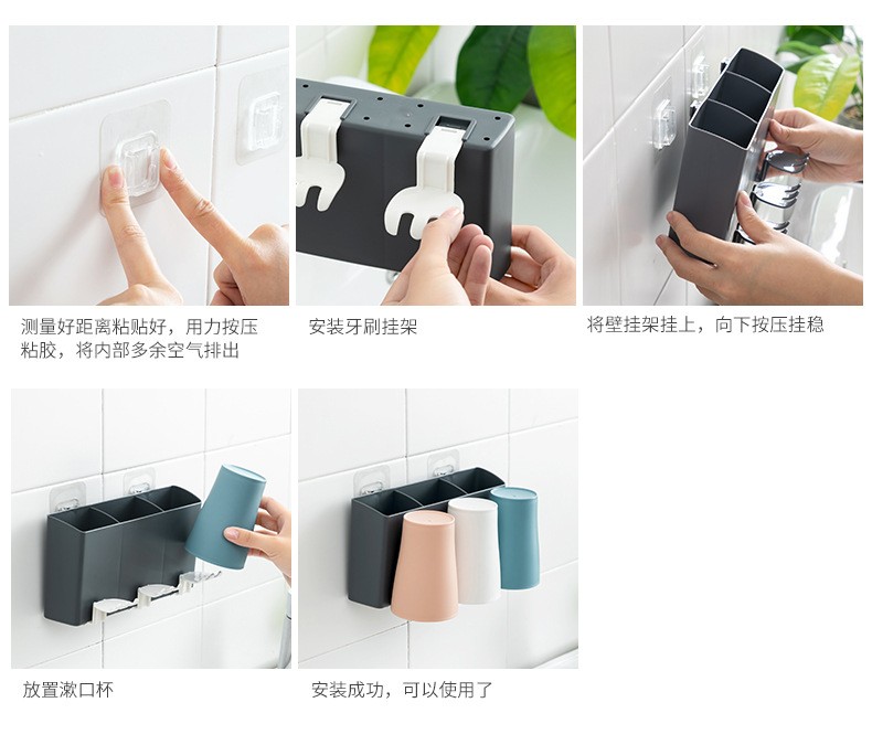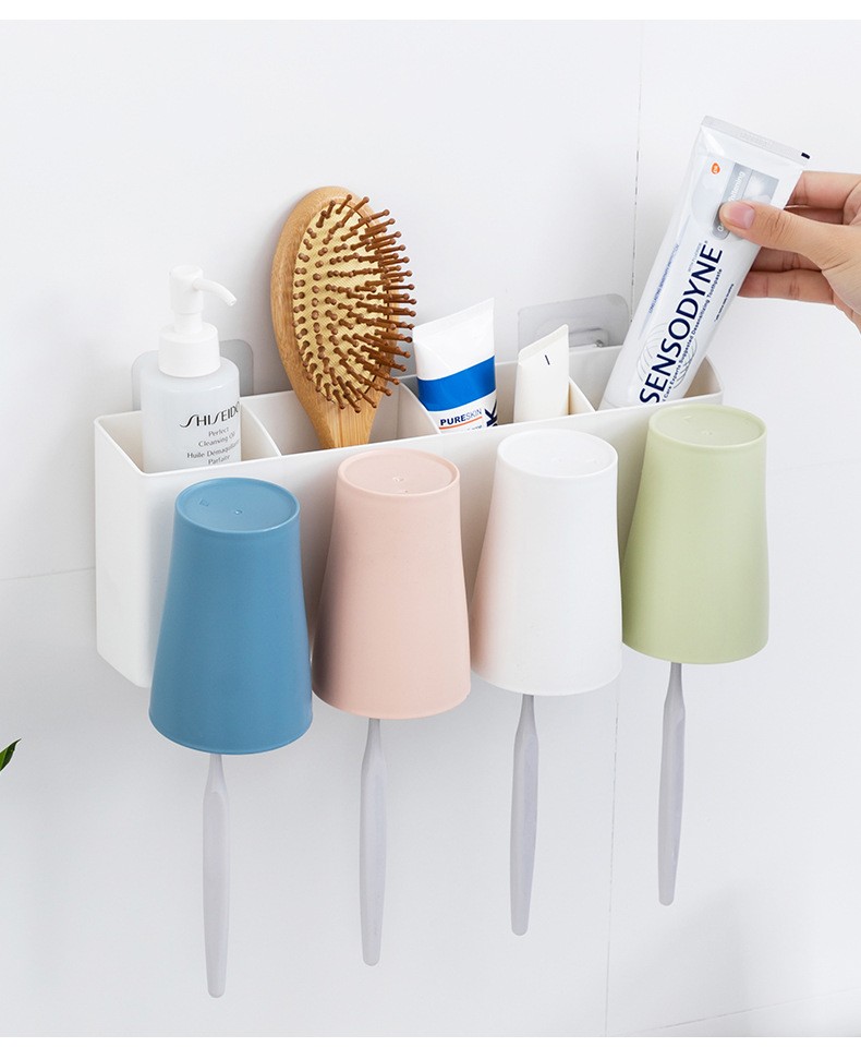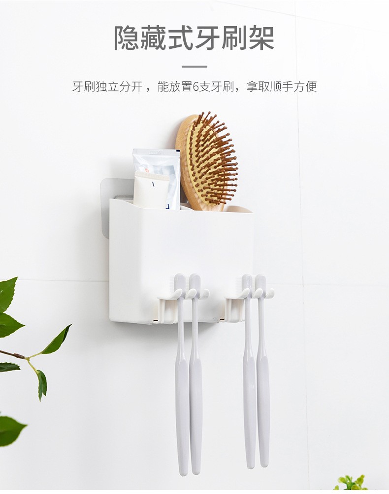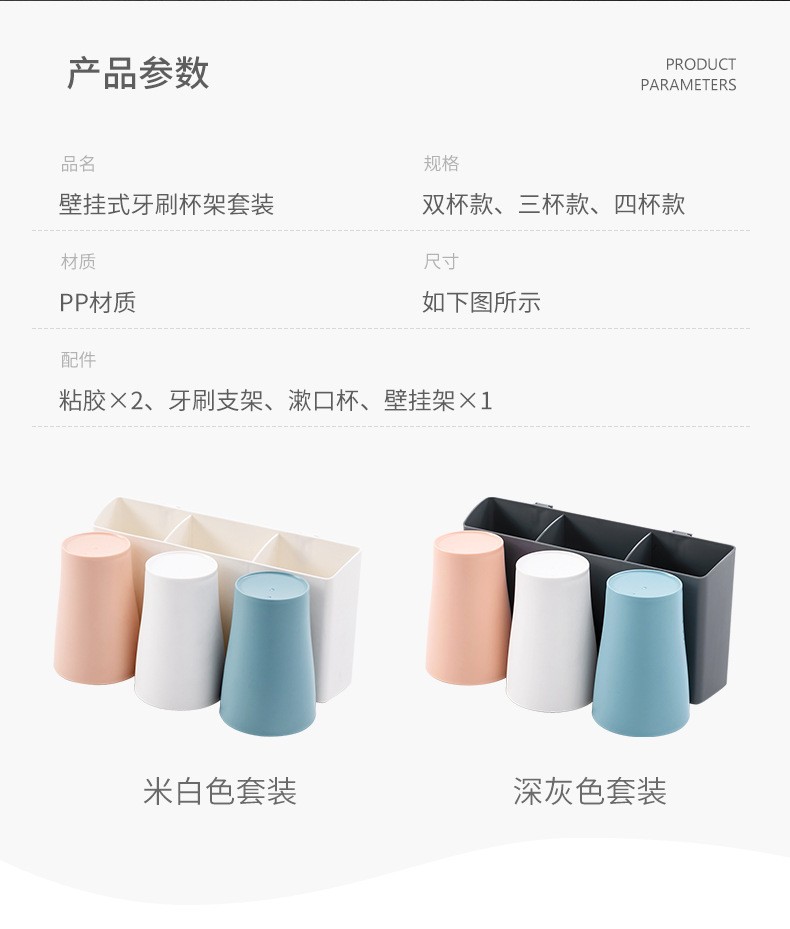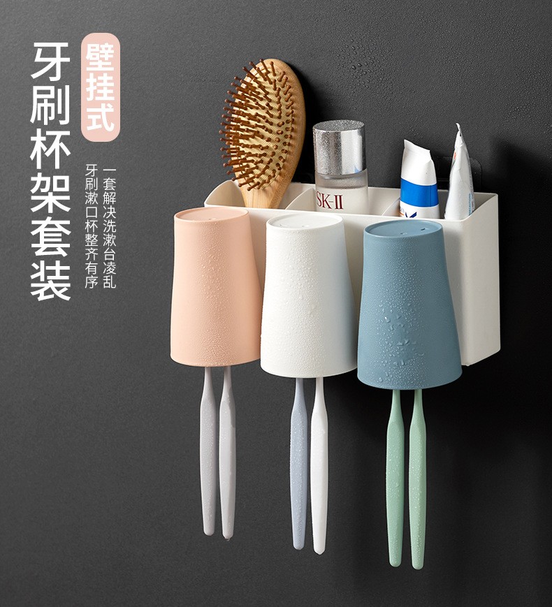 卫生间牙刷置物架牙刷架家用壁挂沥水漱口杯架浴室收纳置物架 白色双杯