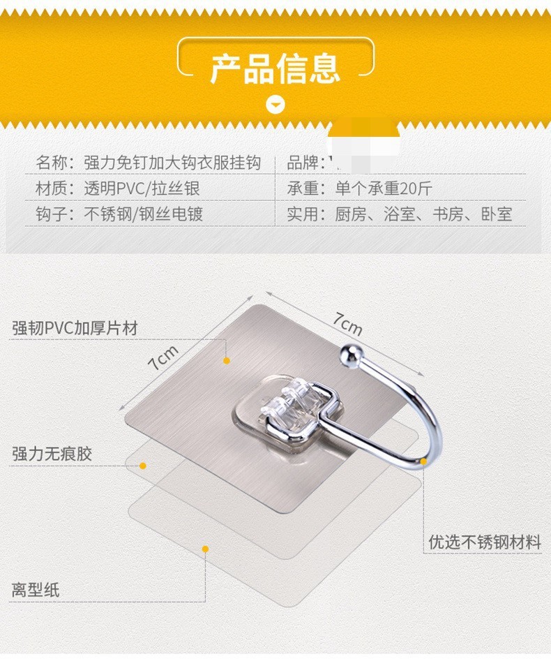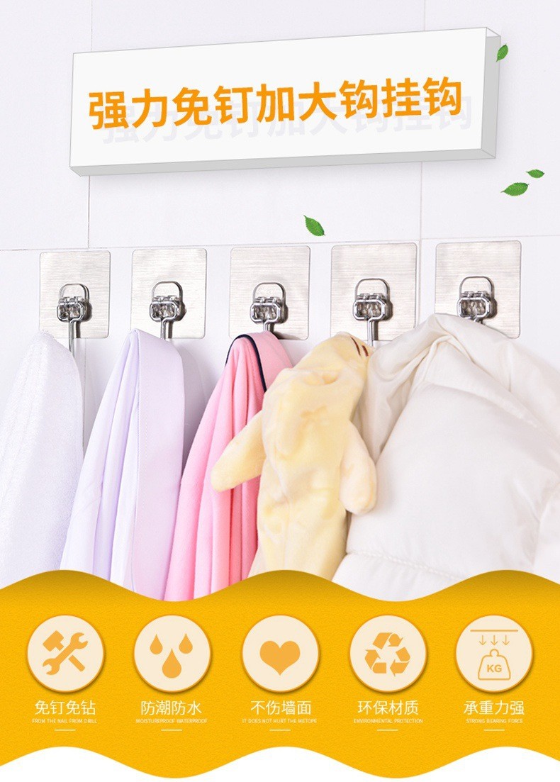 挂钩贴强力大号粘钩粘墙不锈钢厨房挂勾无痕粘贴门后免打孔粘钩