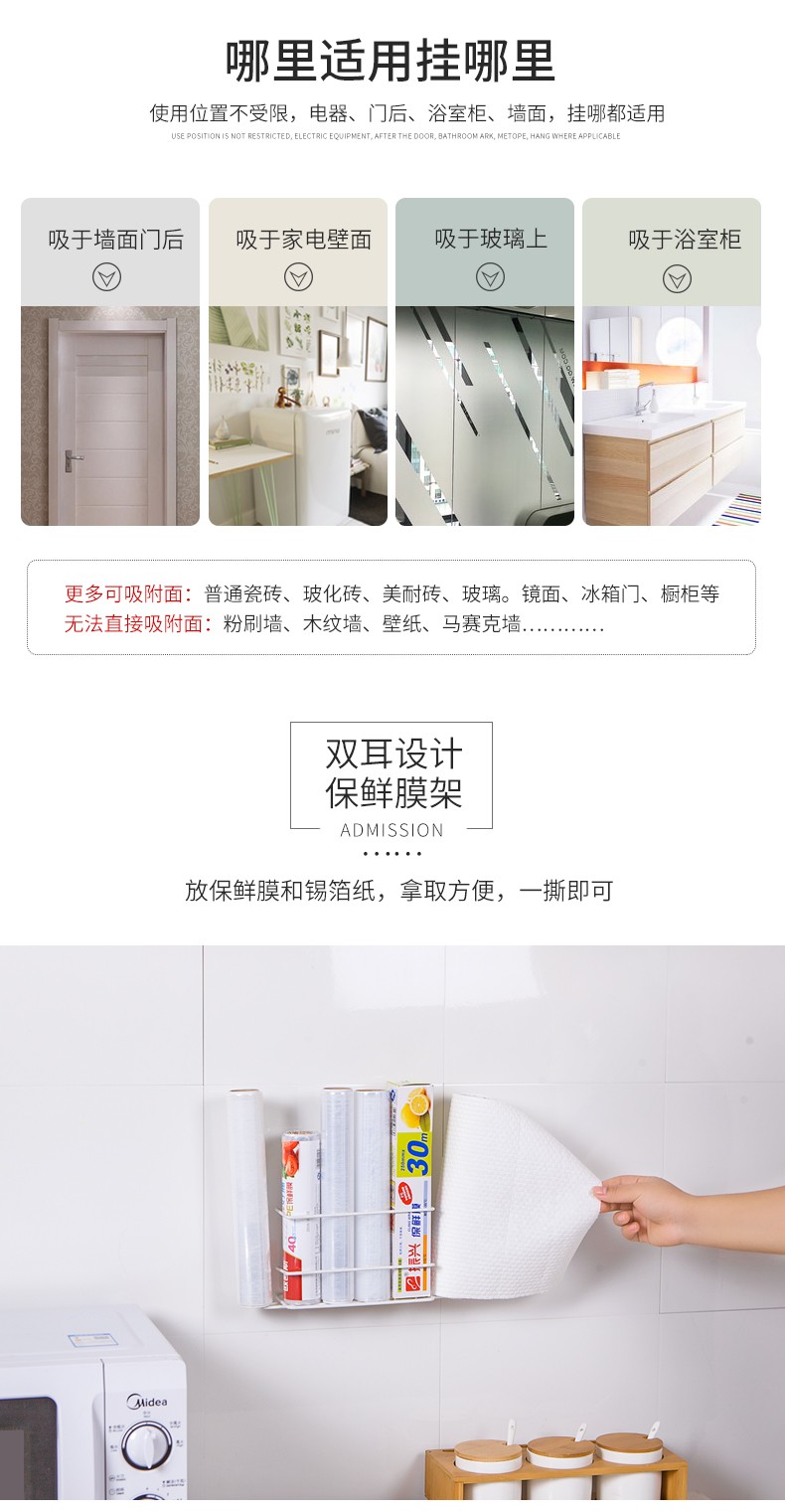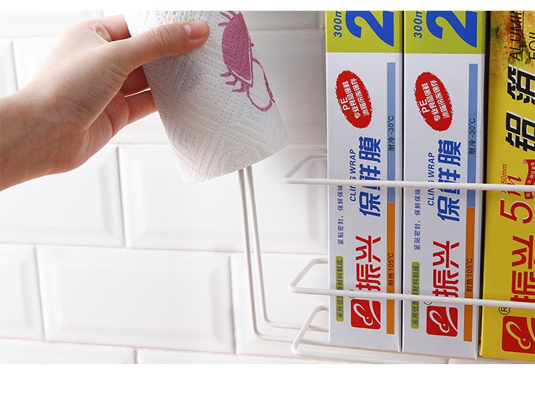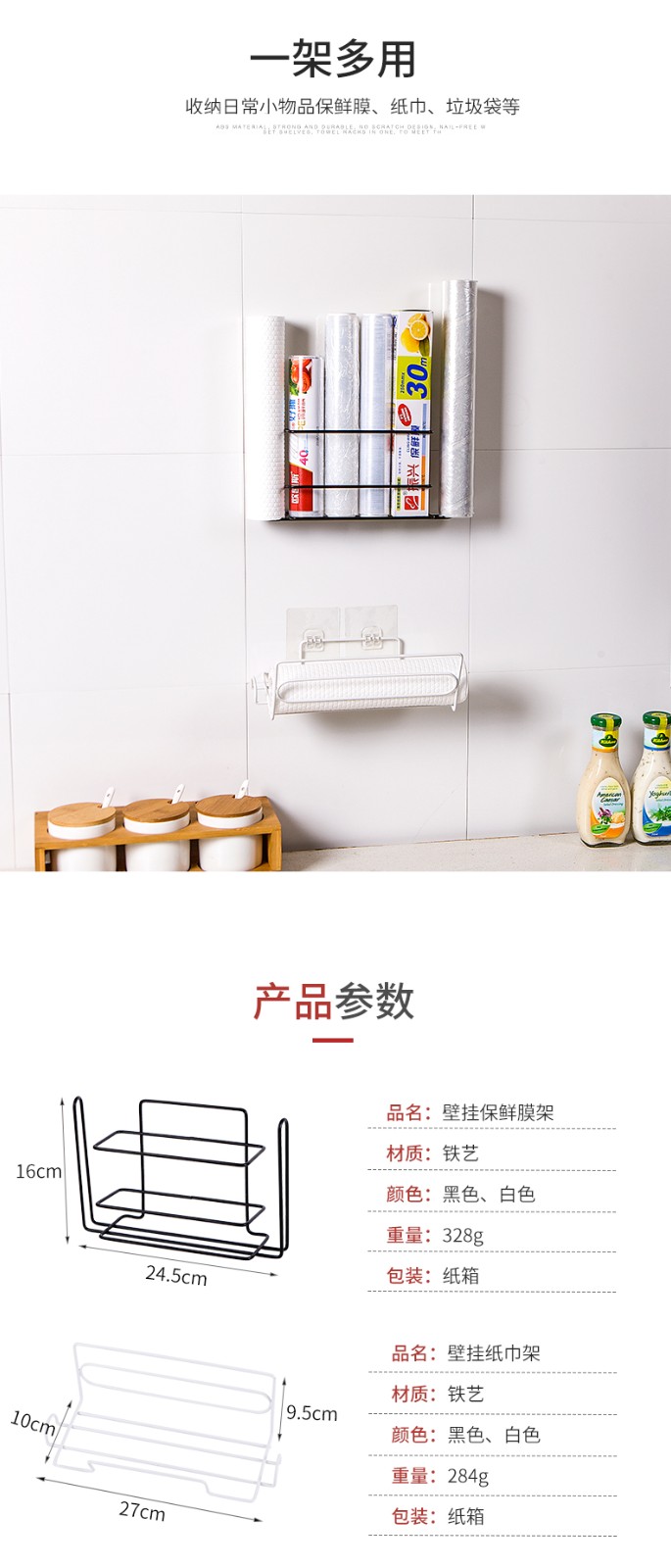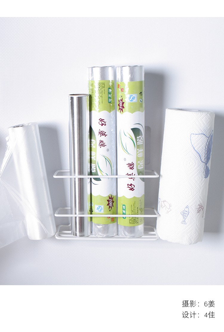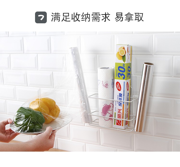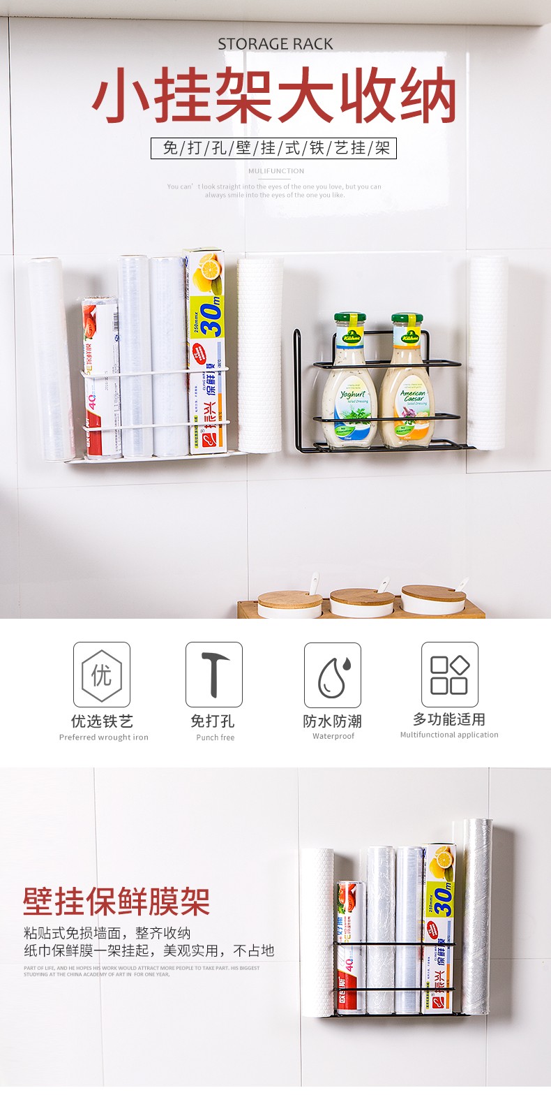 创意免打孔铁艺壁挂式厨房保鲜膜收纳架 浴室收纳架植物架 保鲜膜收纳架