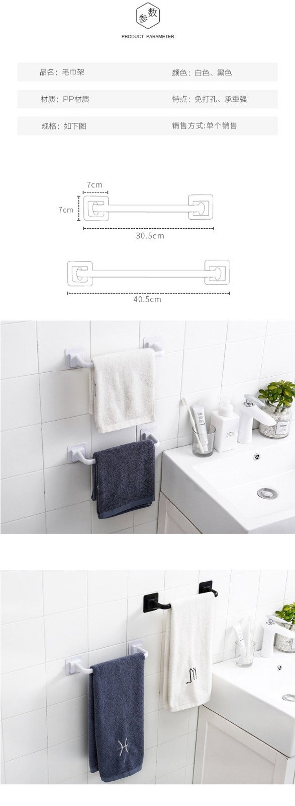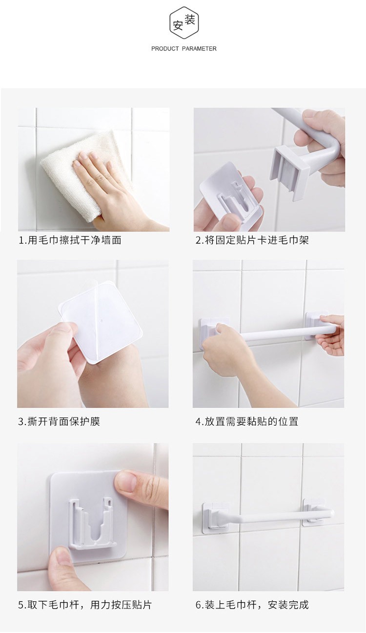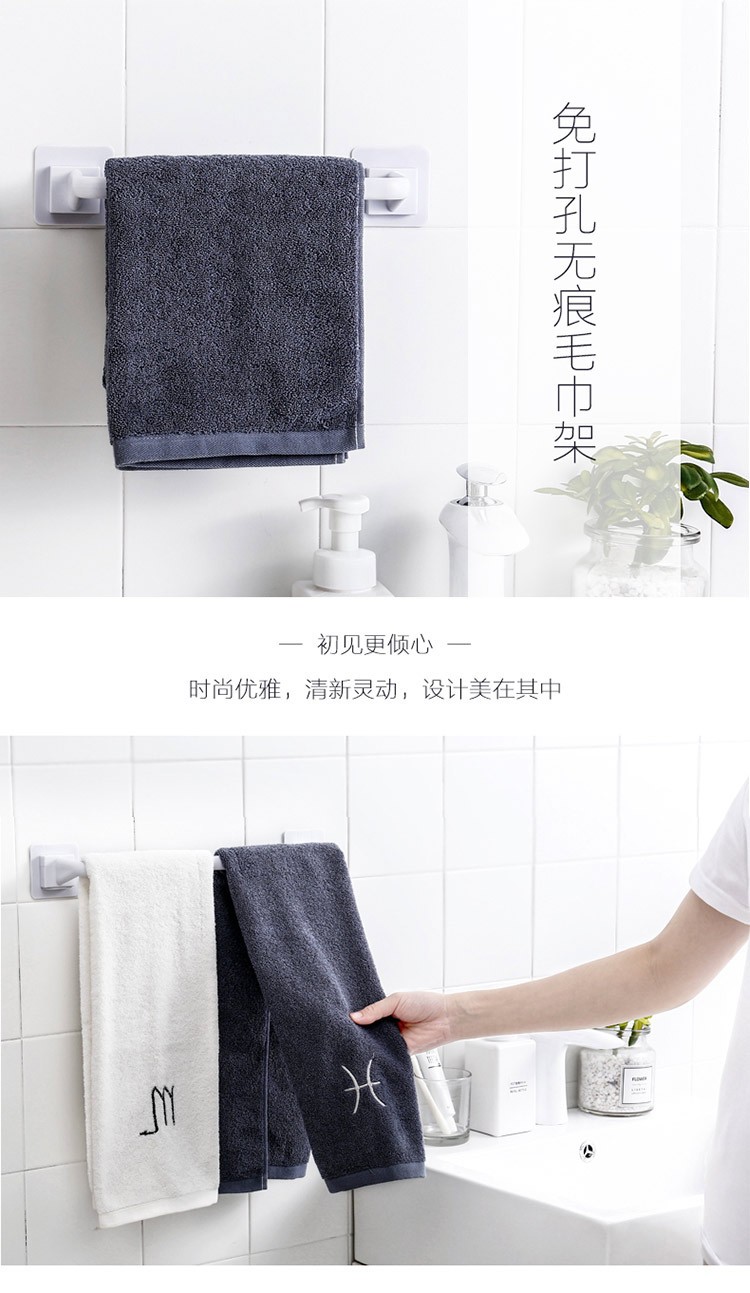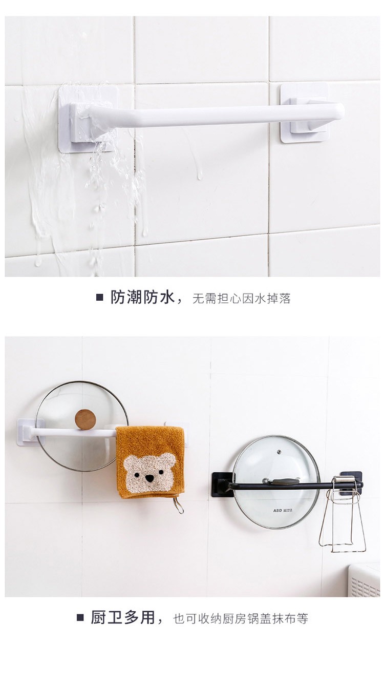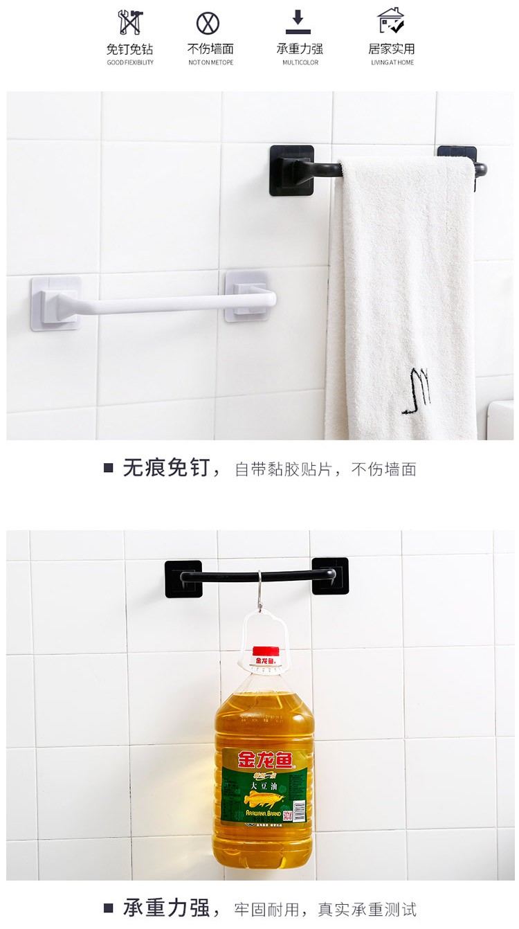 创意浴室免打孔毛巾架壁挂式无痕毛巾整理架免打孔浴室毛巾架鞋架卫生间厨房厕所毛巾挂架单杆加长加厚毛巾杆