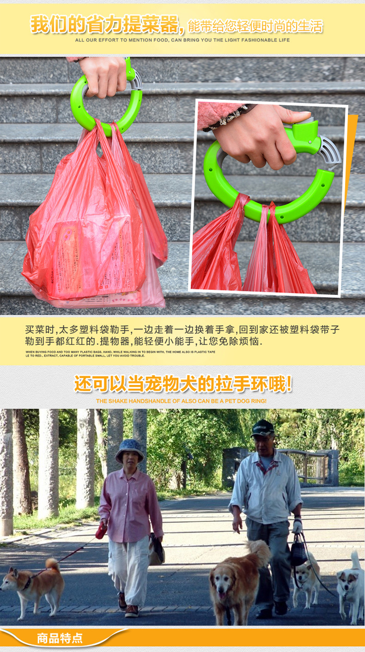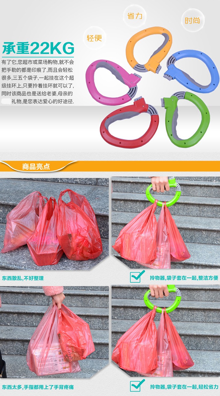 D型提菜器提物器提菜提物省力便携器拎菜器提袋器D型省力提菜器携便式塑料不勒手提物器拎菜器提袋器 颜色随机