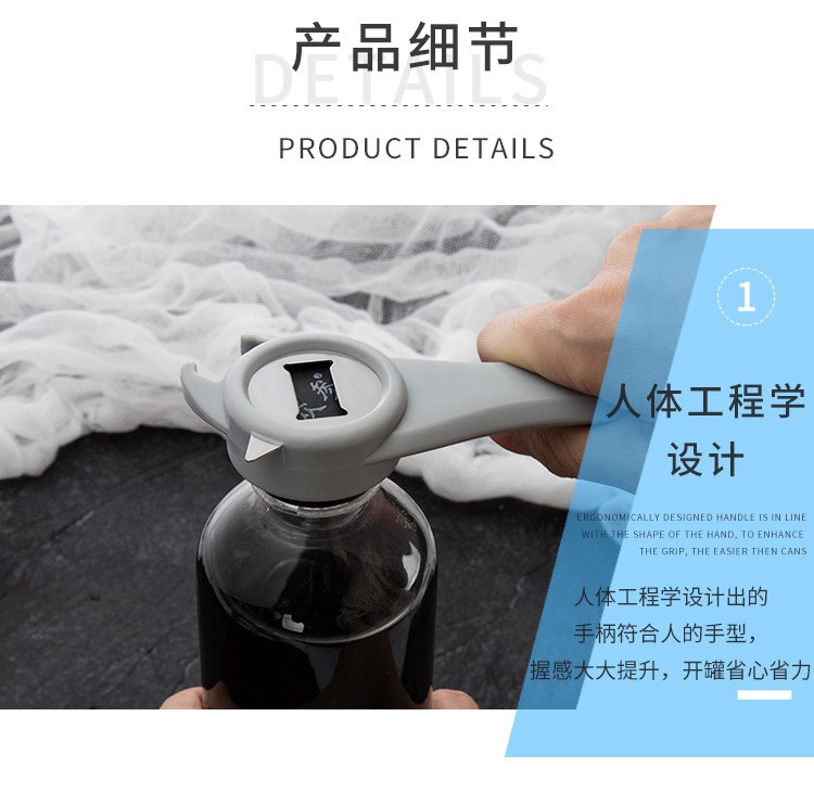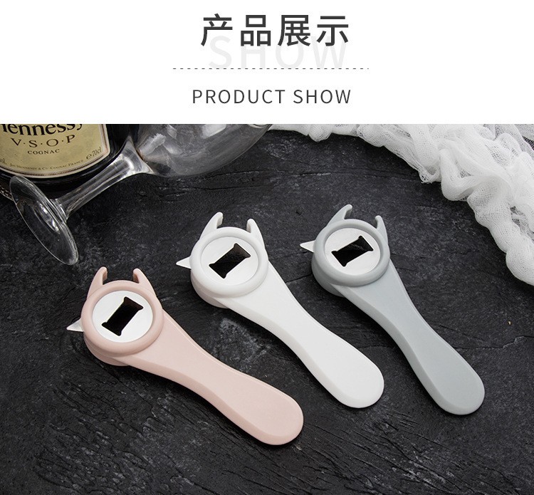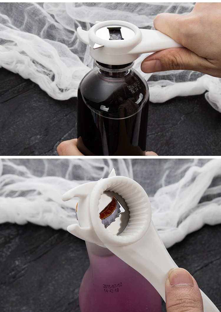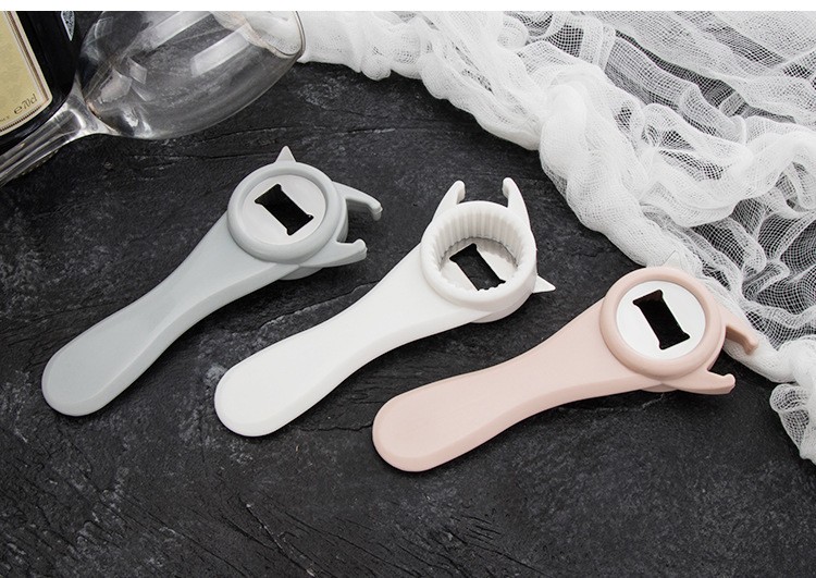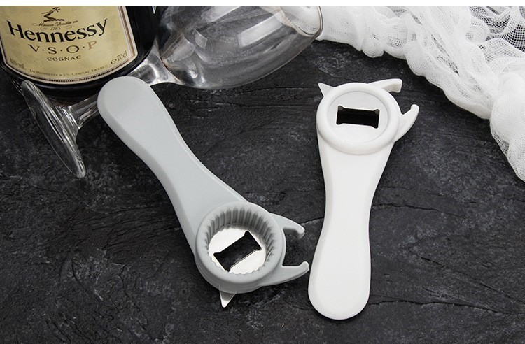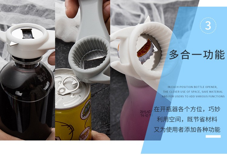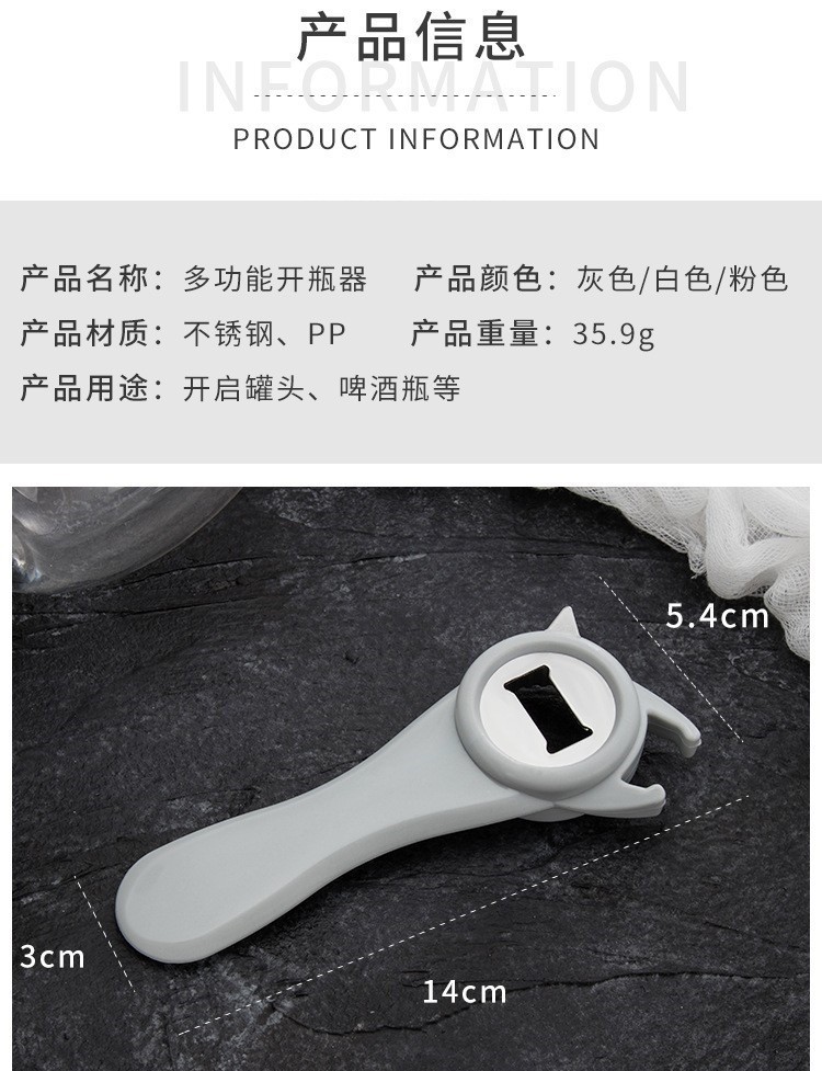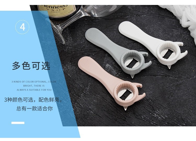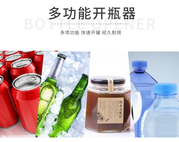 多功能四合一开瓶器不锈钢塑料啤酒开罐器开盖器 颜色随机 14*5.4cm