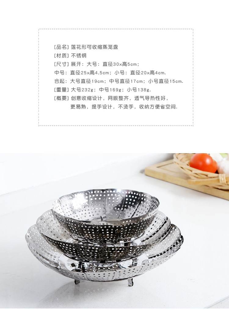 蒸架家用蒸锅架隔水圆形蒸菜架蒸格蒸笼不锈钢可伸缩莲花型蒸盘架 小号